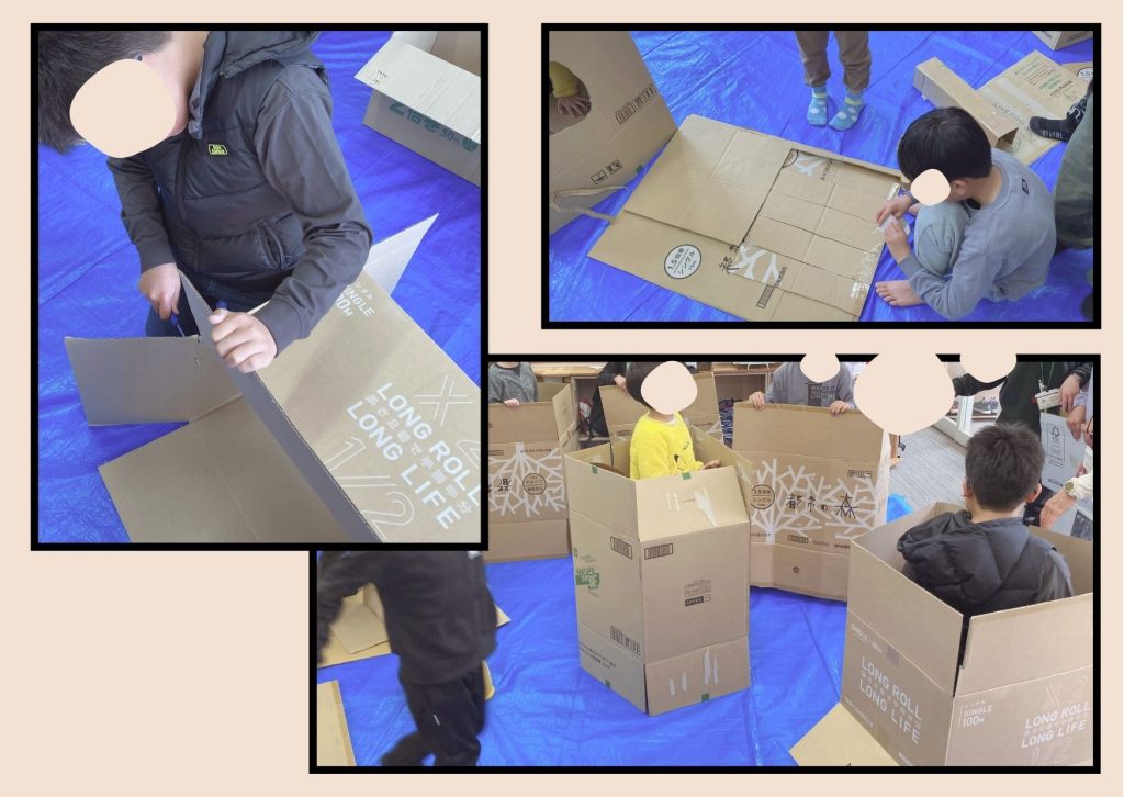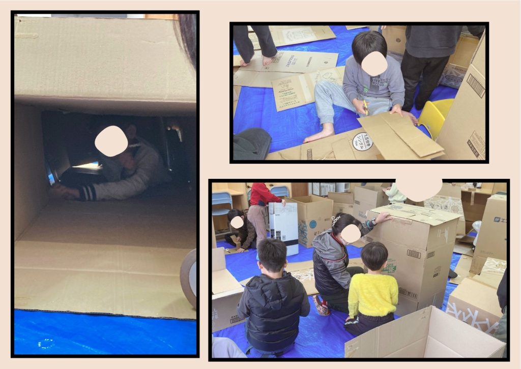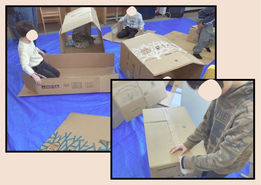 子どもたちがダンボールを自由に使って楽しむ創作活動です😆