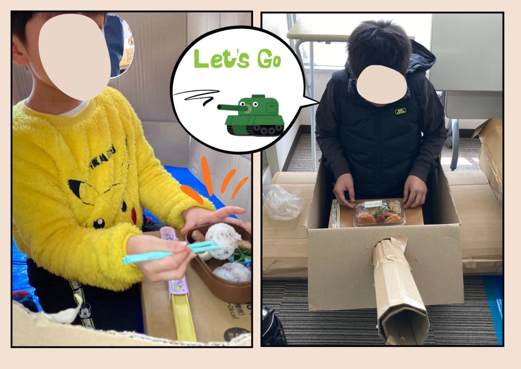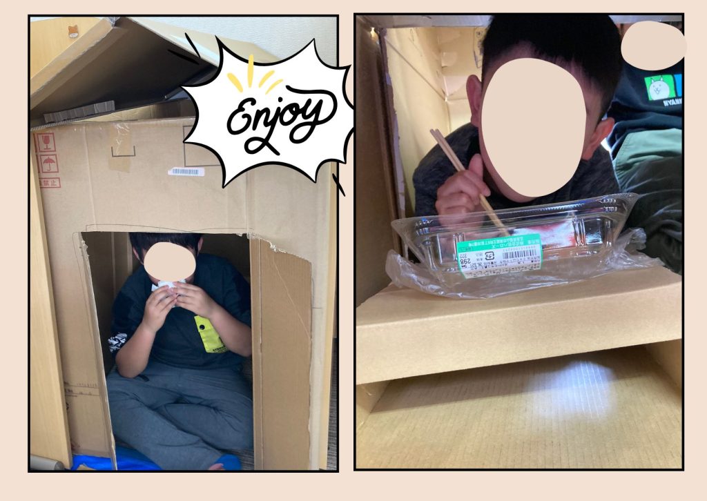 各自、完成した作品の中に入ってお昼ご飯を食べました🍚