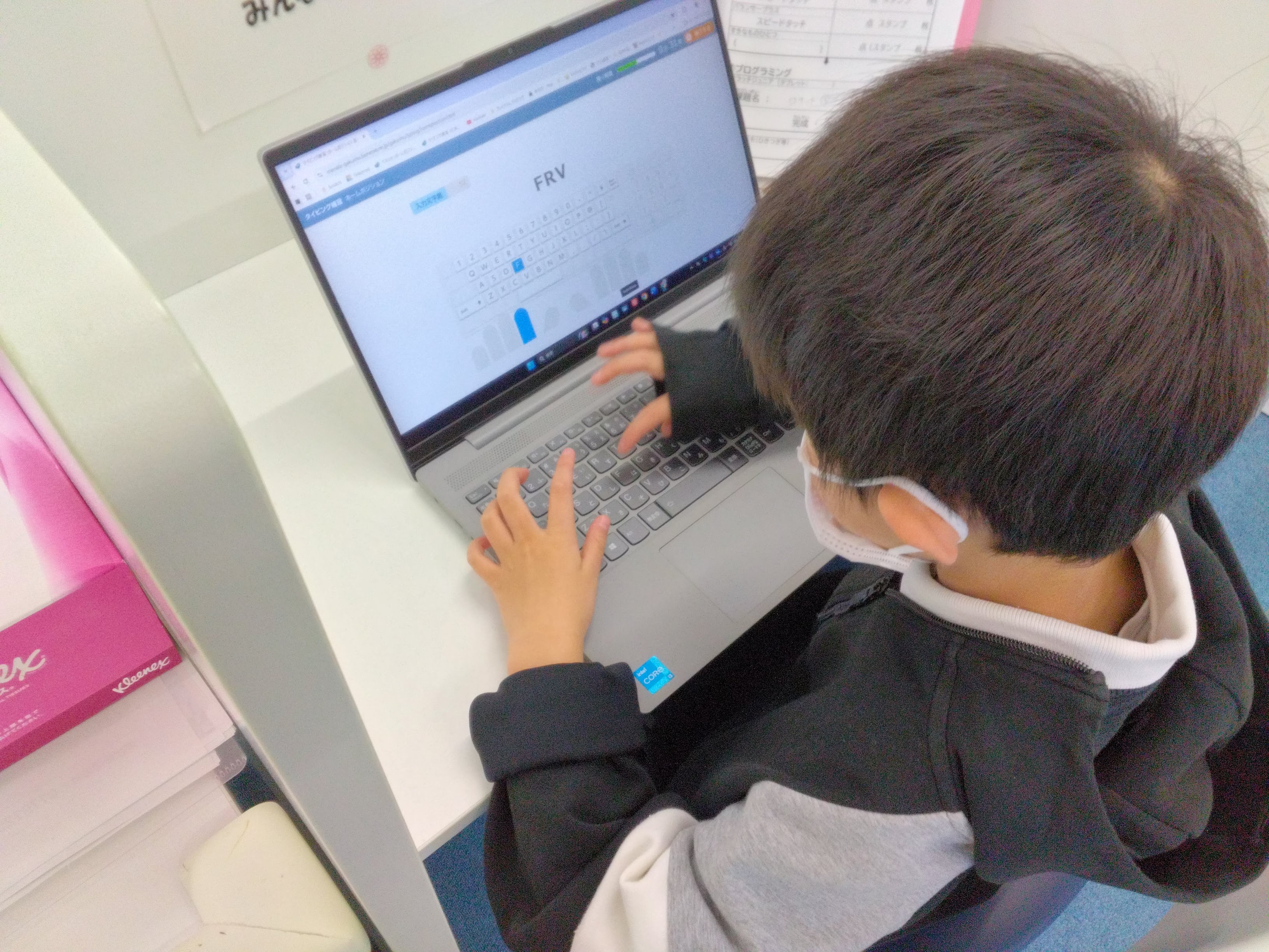 タイピング課題では最初、アルファベットを一文字ずつ打ち、慣れてきたら単語、単語も打てるようになってきたら短文・・・といったようにその子に合わせたレベルの課題に取り組みます。
